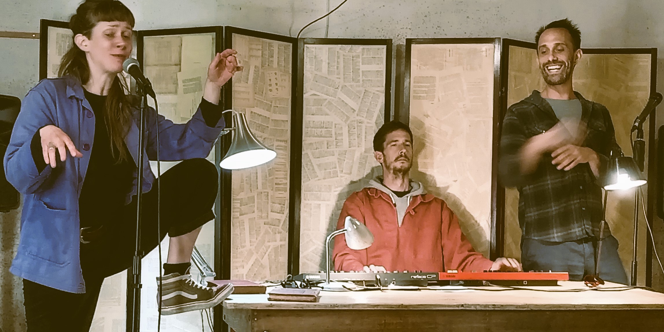 Le musicien joue des claviers. La chanteuse a un micro. Le chanteur aussi. On dirait un groupe de rock international mais qui a su garder une dimension locale : des sortes de pop stars de circuit court.