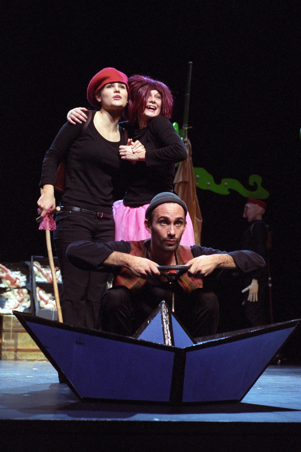 A travers ce spectacle, véritable bric-à-brac baroque jouant avec toutes les ficelles de l'art de conter, nous poursuivons notre travail de passeur du livre à la scène et notre réflexion sur la distanciation initiée avec lesContes de l’Impasse Rosette. Nous éloignons l’identification acteur/personnage afin que le spectateur puisse réinvestir l’histoire par son propre imaginaire. Nous ne voulons pas imposer un discours théâtral au spectateur. Nous lui laissons au contraire des zones franches pour qu’il reconstruise son propre spectacle. Ainsi, nous n’avons pas de coulisses, tous les éléments de décor sont exposés aux spectateurs sur le plateau, et les acteurs viennent les prendre au fur et à mesure. Notre spectacle s’est construit dans la joie du jeu et c’est par cet élan qu’il emporte le spectateur dans la finesse et la fantaisie du conte de Voltaire.