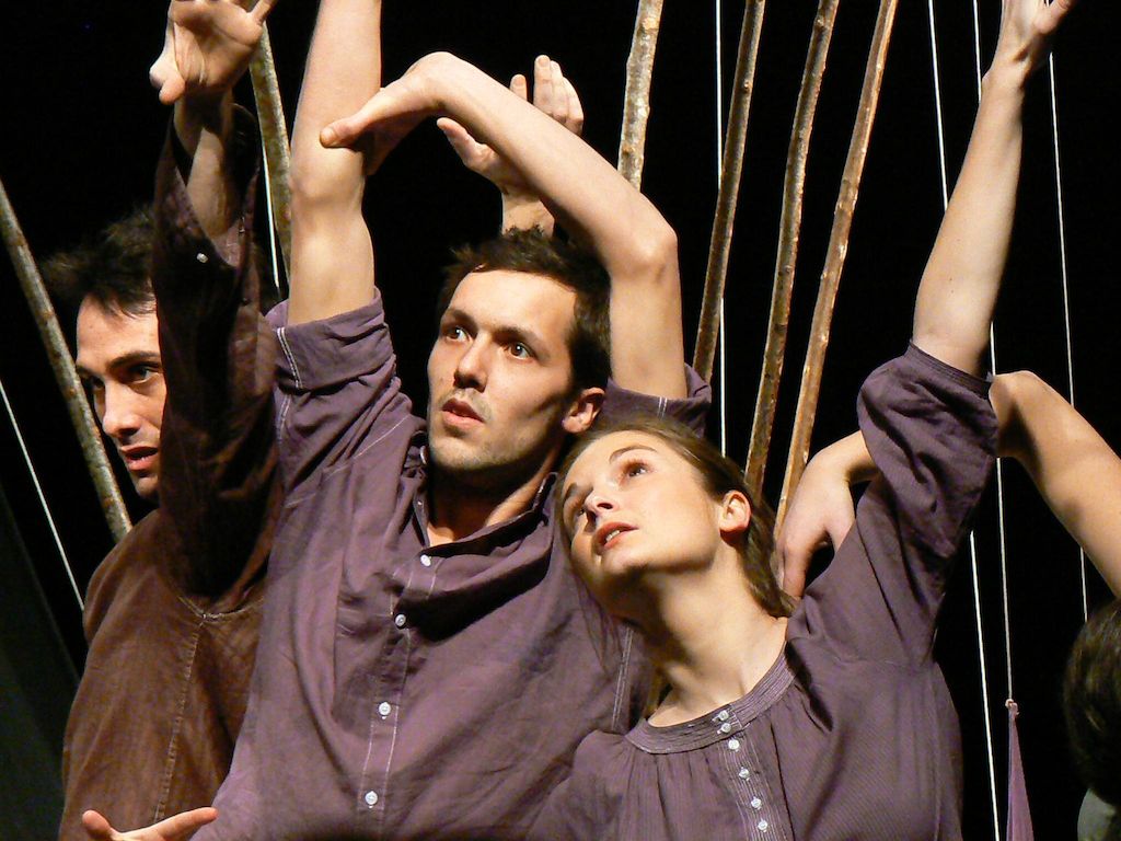 Nous l’avons rencontré, nous l’avons écouté parler de lui et du monde à travers le thème de l’arbre, récurrent dans sa vie. Nous avons ajouté nos impressions sur ces rencontres et nous avons créé une pièce sur les arbres, sur Gatti et sur nous-mêmes. Car il s’agissait bien de nous, de nous réapproprier des élans de Gatti afin de créer une force qui soit tournée vers les réalités du monde actuel. Que veut dire résister aujourd’hui ? Que signifie le mot lutte ? Comme nous parlons de nous au plus près, nous pensons que ce spectacle pourra aussi parler à d’autres. C’est en explorant les possibilités du langage que nous cherchons une nouvelle voix. Une voix en dehors des langages préfabriqués qu’on nous impose. Une voix qui puise dans la chanson de Ferré comme dans la poésie de Rimbaud, les élans d’un langage affranchi de toute hiérarchie. Et c’est par la métaphore de l’arbre et par un appel à la verticalité que nous voulons voir plus haut et trouver par notre théâtre un moyen de faire « l’homme plus grand que l’homme ».