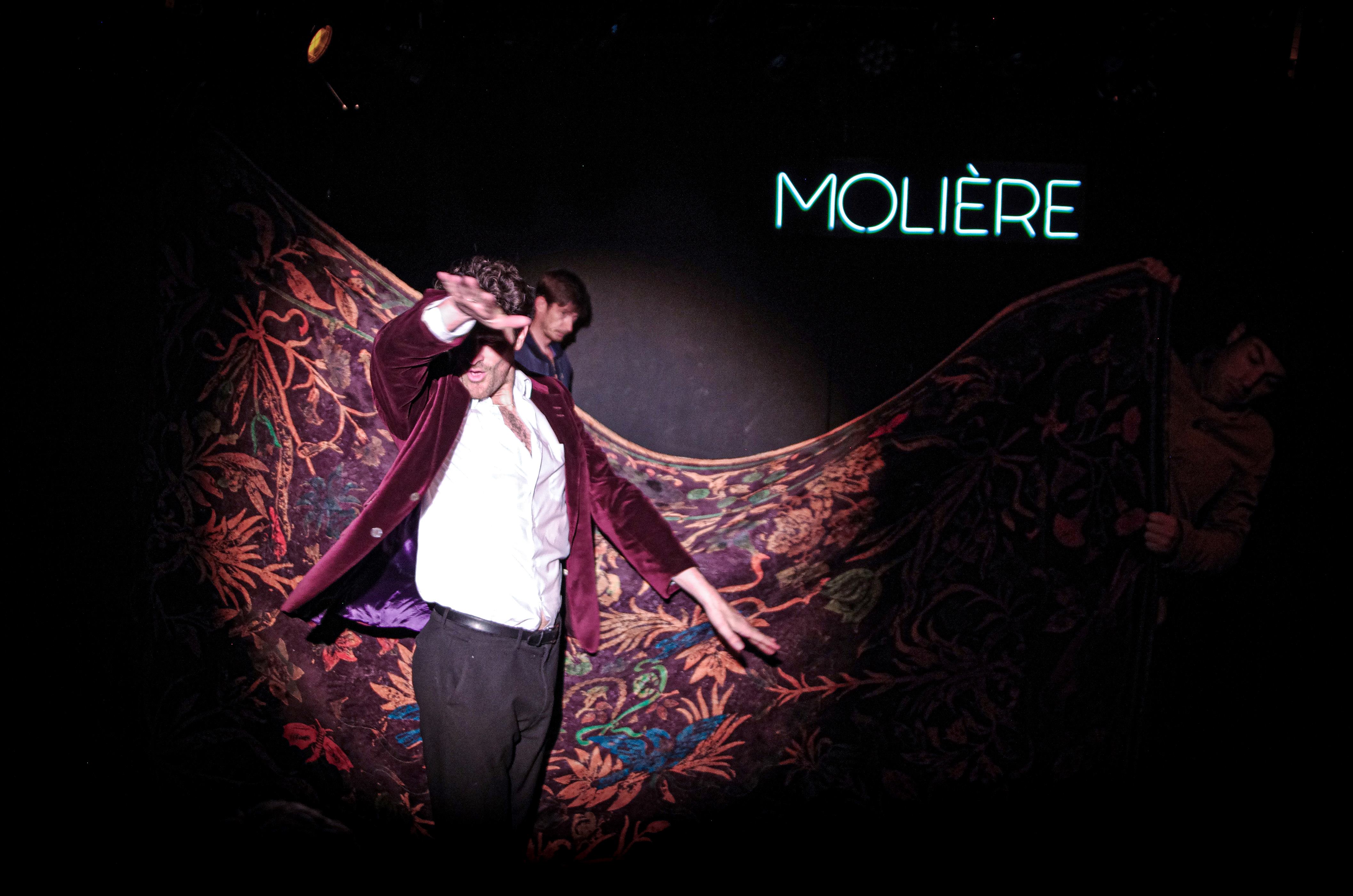 Méli-Mélo Oratoire Librement Inspiré d’Errances dans le Répertoire de l’Eponyme est un astucieux acronyme de MOLIERE. Et c’est tout en astuces, justement, que ce spectacle traverse sa vie et son œuvre.