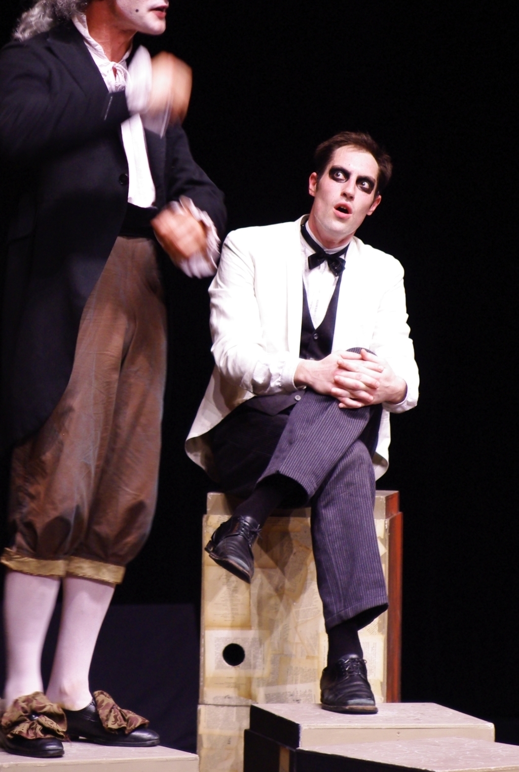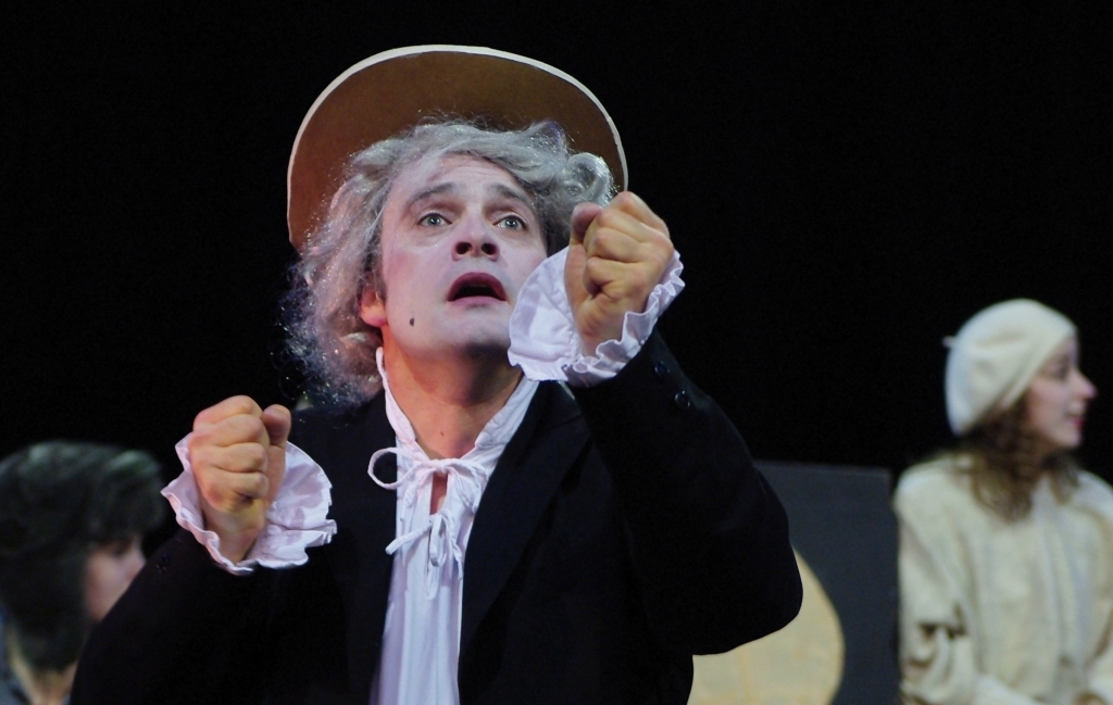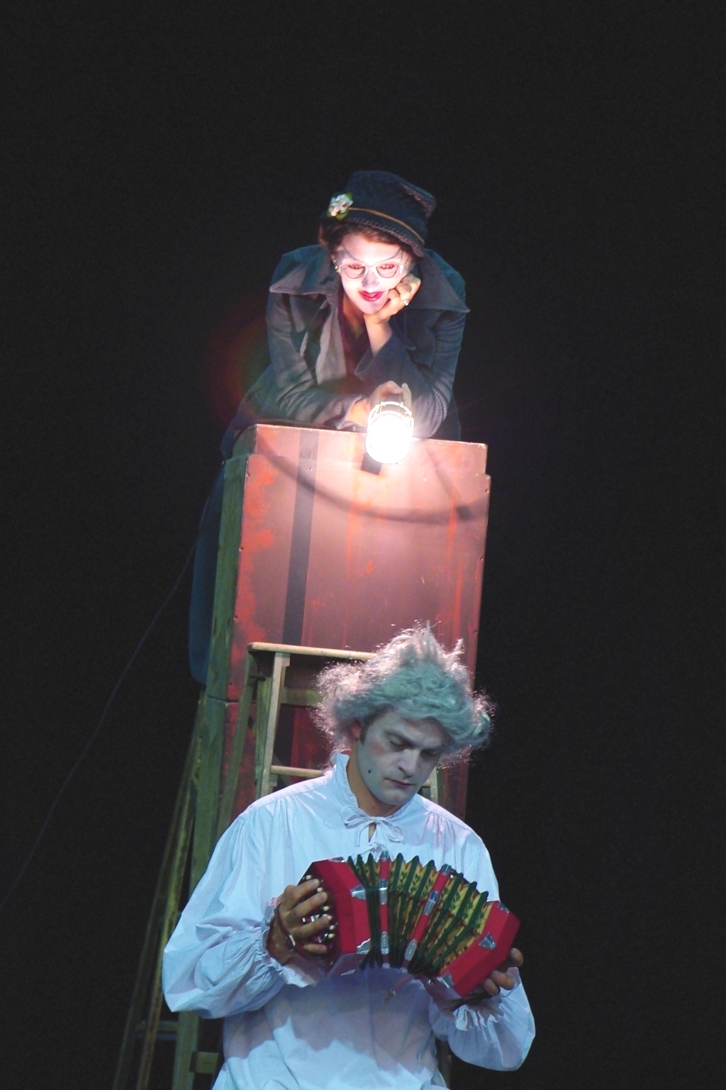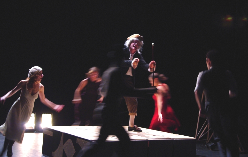 Alors, pour mieux le connaître encore, nous décidons de le changer d’air, de lui donner plus d’espace : qu’il quitte les « scènes » de bar pour s’épanouir plus entièrement sur un plateau, où tout est à imaginer. Nous continuons donc à dessiner ce personnage mais avec plus d’ombres. Ce spectacle est un voyage dans les songes d’un baron à sept visages.