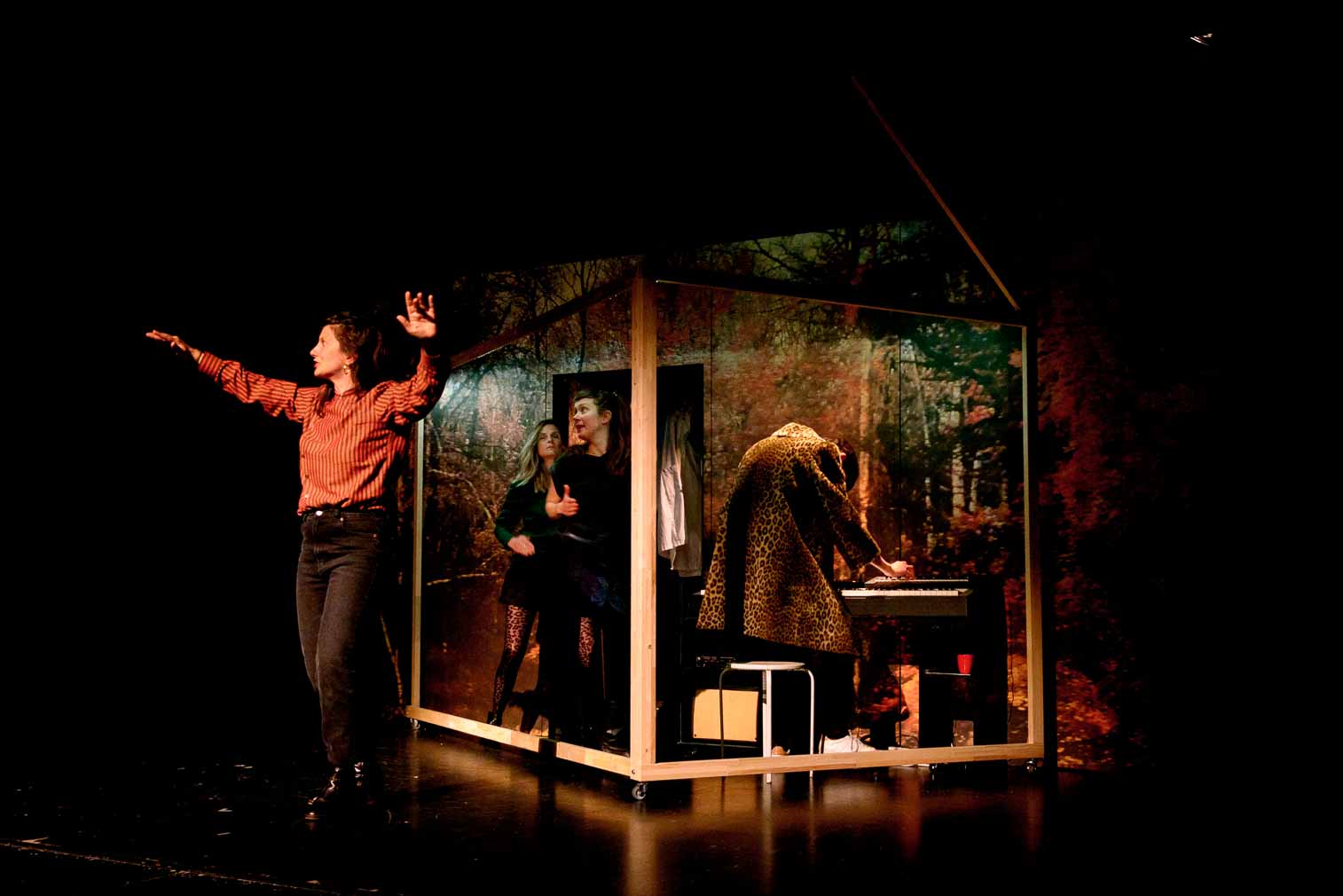 Et pour animer la parole, trois comédiennes prennent les rôles des personnages de sa vie - son père, ses frères et sa soeur, son éditeur, ses amours, sa femme...- et leur donnent les mots des personnages de ses pièces.